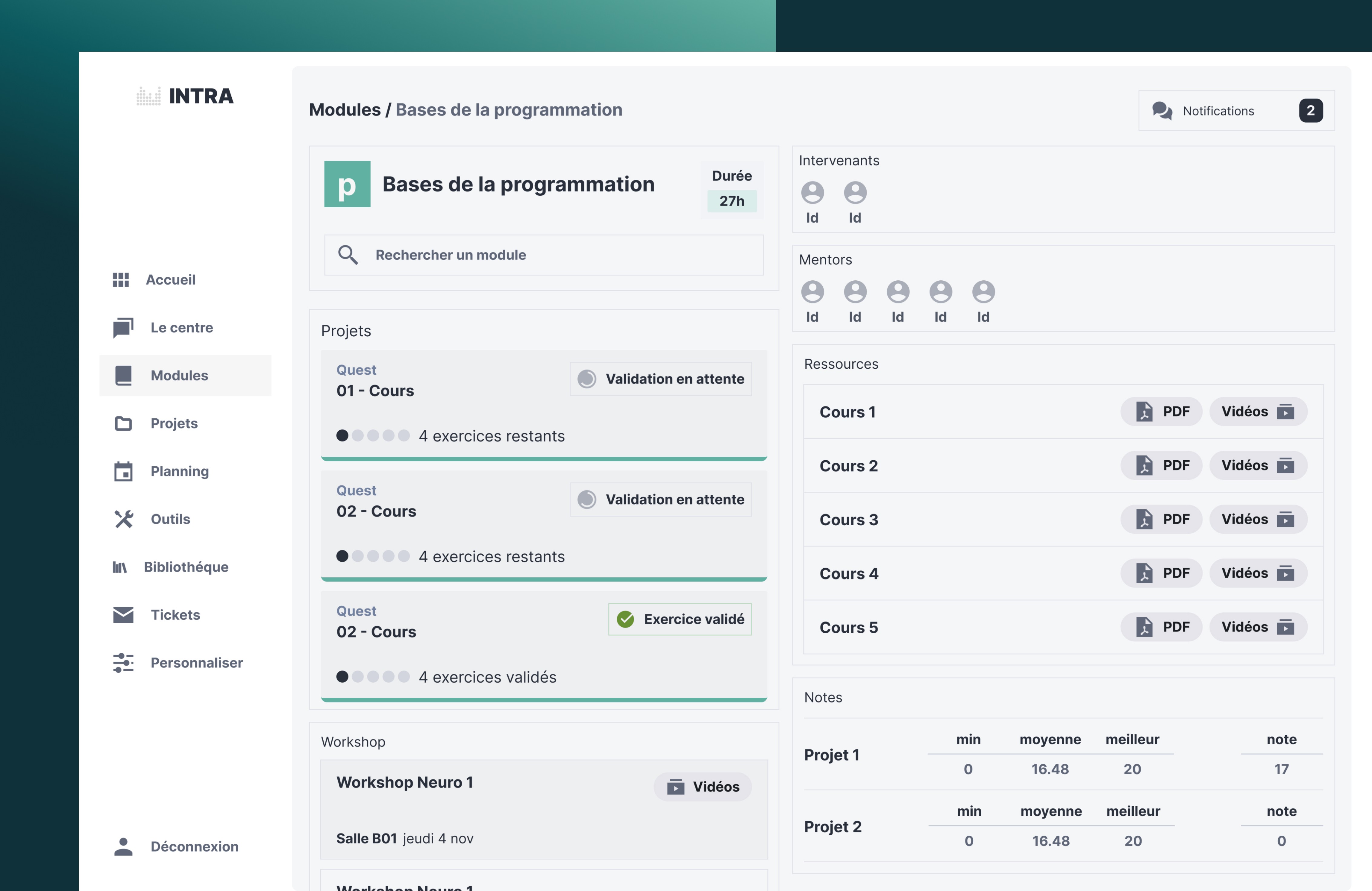 Dans le cadre du module Neuro de ma formation à l'ETNA, j’ai travaillé sur la fiche d'un module pédagogique en commençant par l'analyse de l'existant et en maquettant les principaux écrans, je vous présente ci-dessous l'écran le plus aboutie à ce jour.